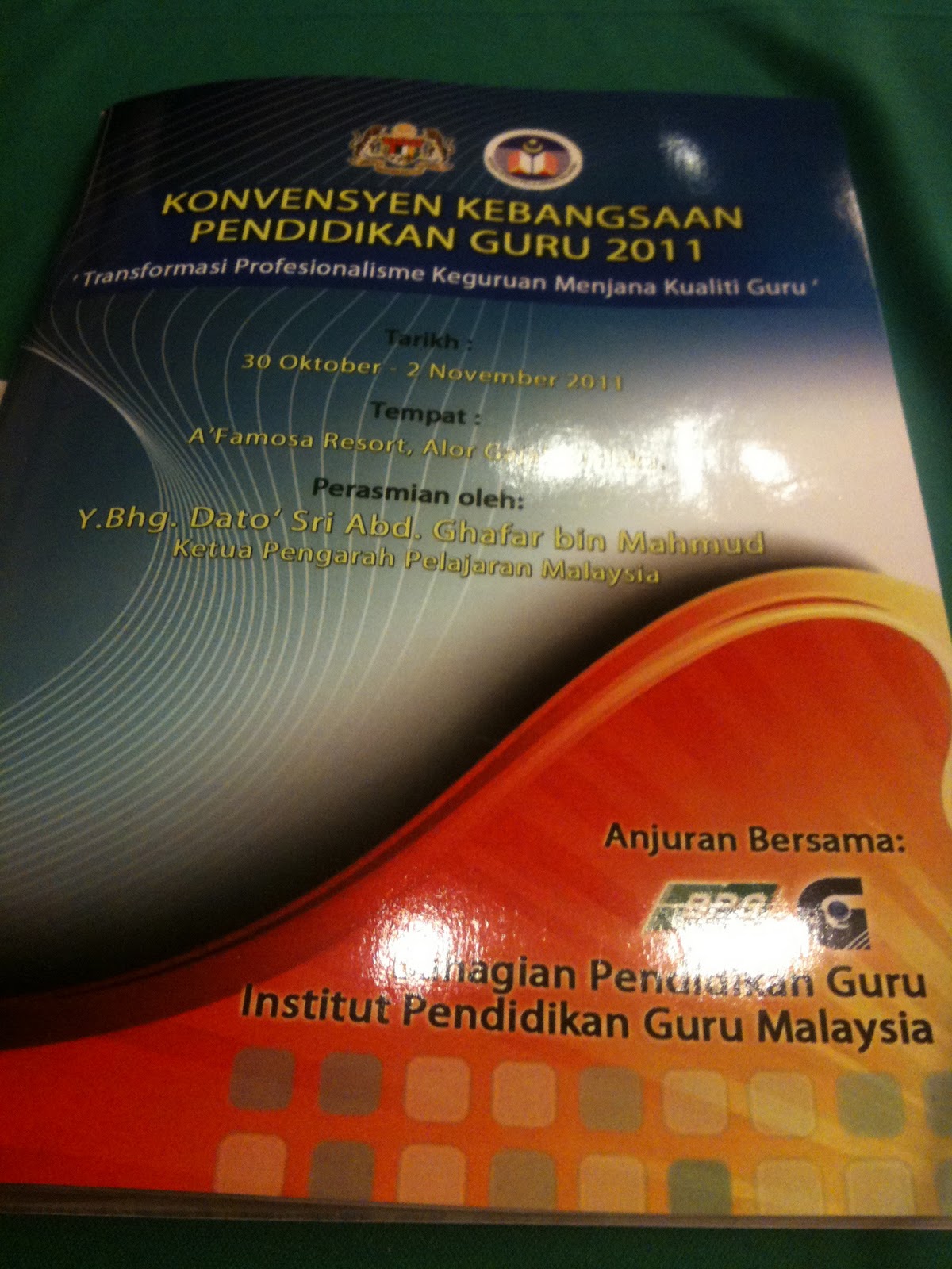 Perjalanan yang cukup mencabar untuk menyertai konvensyen ini. memulakan perjalanan jam 7.30am.. tapi kena menunggu di KLIA bermula jam 2.00pm sehingga jam 7.15pm baru ada bas yang datang menjemput untuk ke A'Famosa Resort Melaka. Cabaran dah bermula sebelum cabaran sebenar bermula: Pameran Inovasi IPG.